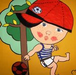 2010Jongetje met voetbal. Combinatie van verf en vilt. Randen zijn meegeschilderd.