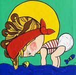 2010Kindje speelt in de zee. Combinatie van verf, vilt en papier. Randen zijn meegeschilderd.