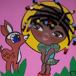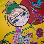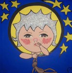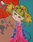 2012Alisha, geboren in het jaar van de draak. Acryl, inkt, stof, kunstwimpertjes, glitters