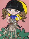 2010Kokeshi op ponypaardje. Acryl, vilt, inkt, kunstwimpertjes.